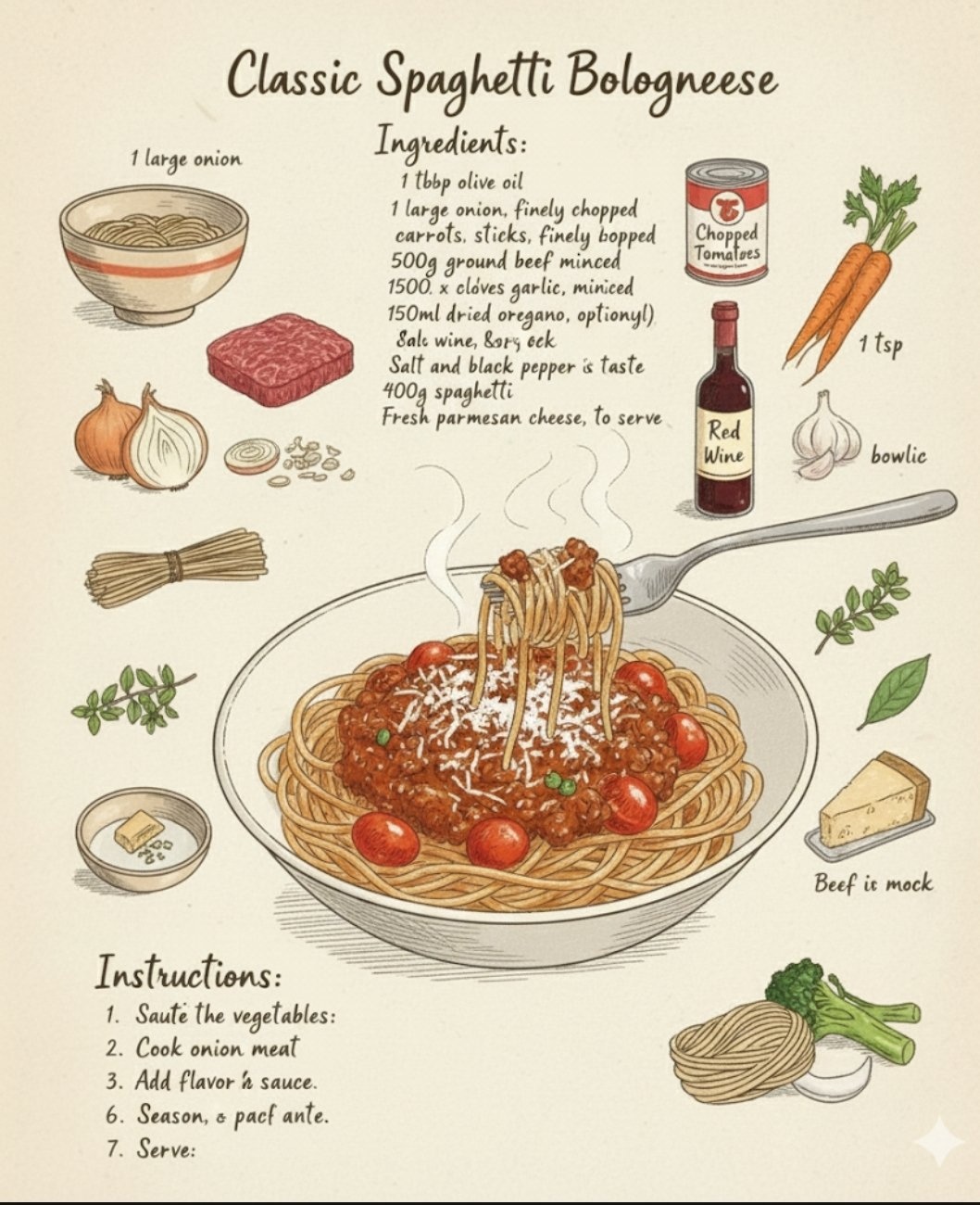 Prompt: Turn this ramen into a cute recipe page with illustrations in the style of a vintage cookbook that was hand-drawn. A carefully drawn ingredients with labels, measures, and implements like bowls, whisks, or spoons should surround the composition’s focal point. To create a homey, nostalgic vibe, use textured shading, warm pastel colors, and fine, ink-like outlines. Add recipe writing in the handwritten manner, including the ingredients and directions organically into the layout. Make sure the page has an artistic and educational tone, combining the beauty of colorful illustrations with a cookbook aesthetic.